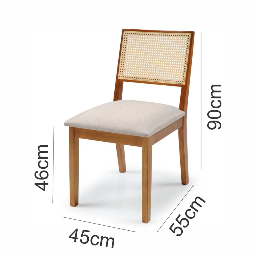 Seu encosto em rattan traz leveza visual, enquanto o assento anatômico com espuma D23 oferece o conforto ideal para longas refeições ou momentos de trabalho. Além disso, ela já vai montada, aceita impermeabilização e suporta até 150 kg.
