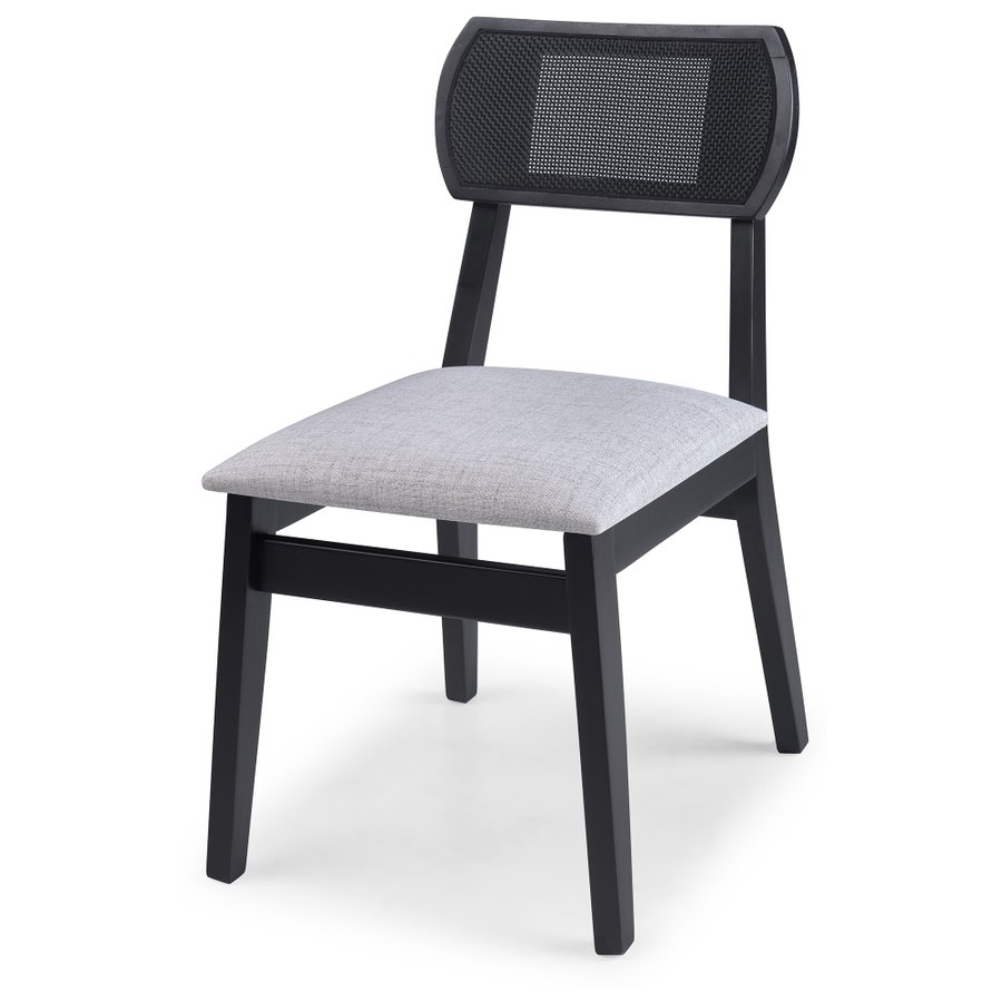 . Assento estofado para maior conforto no dia a dia. Tecido linho rustico cinza.