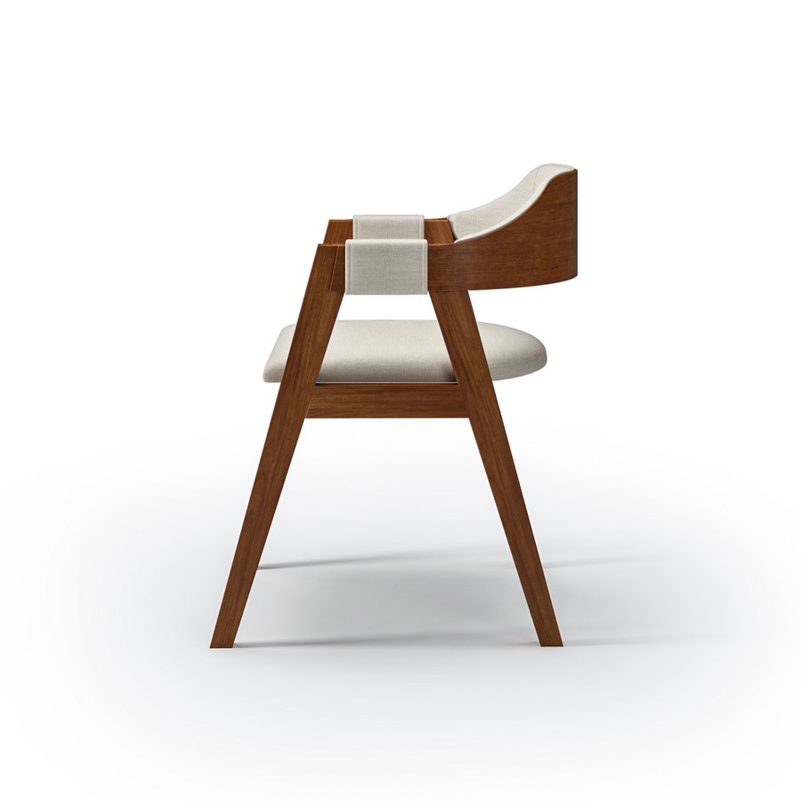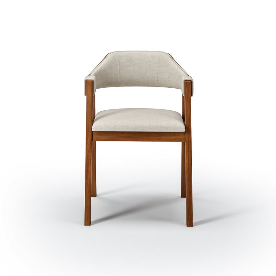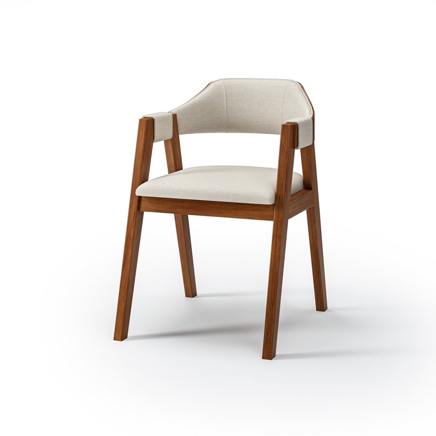 . Conforto acolhedor: estofadas em linho rústico bege, as cadeiras oferecem maciez e bem-estar em cada refeição.