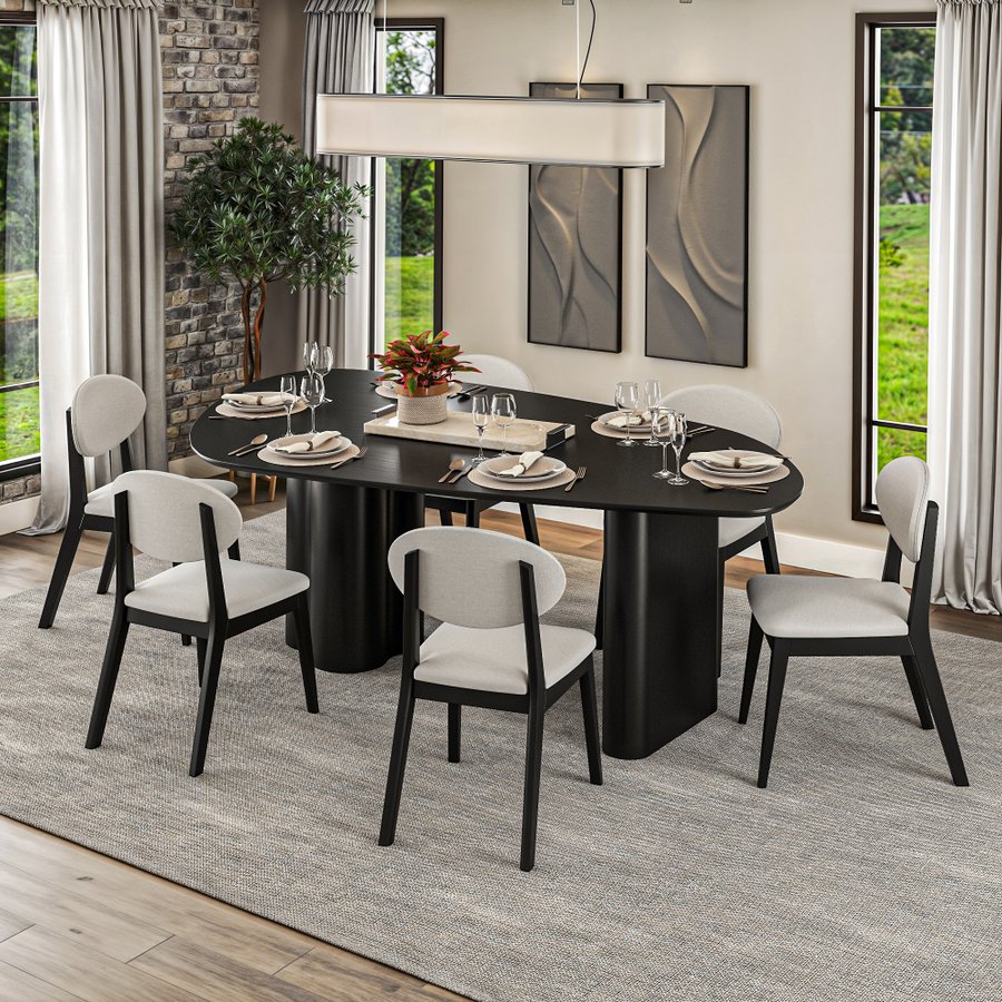 . Design contemporâneo e harmônico: Mesa Orgânica Zara com visual elegante e acabamento refinado, complementada pelas Cadeiras Rius — resultado em um visual coordenado e sofisticado.